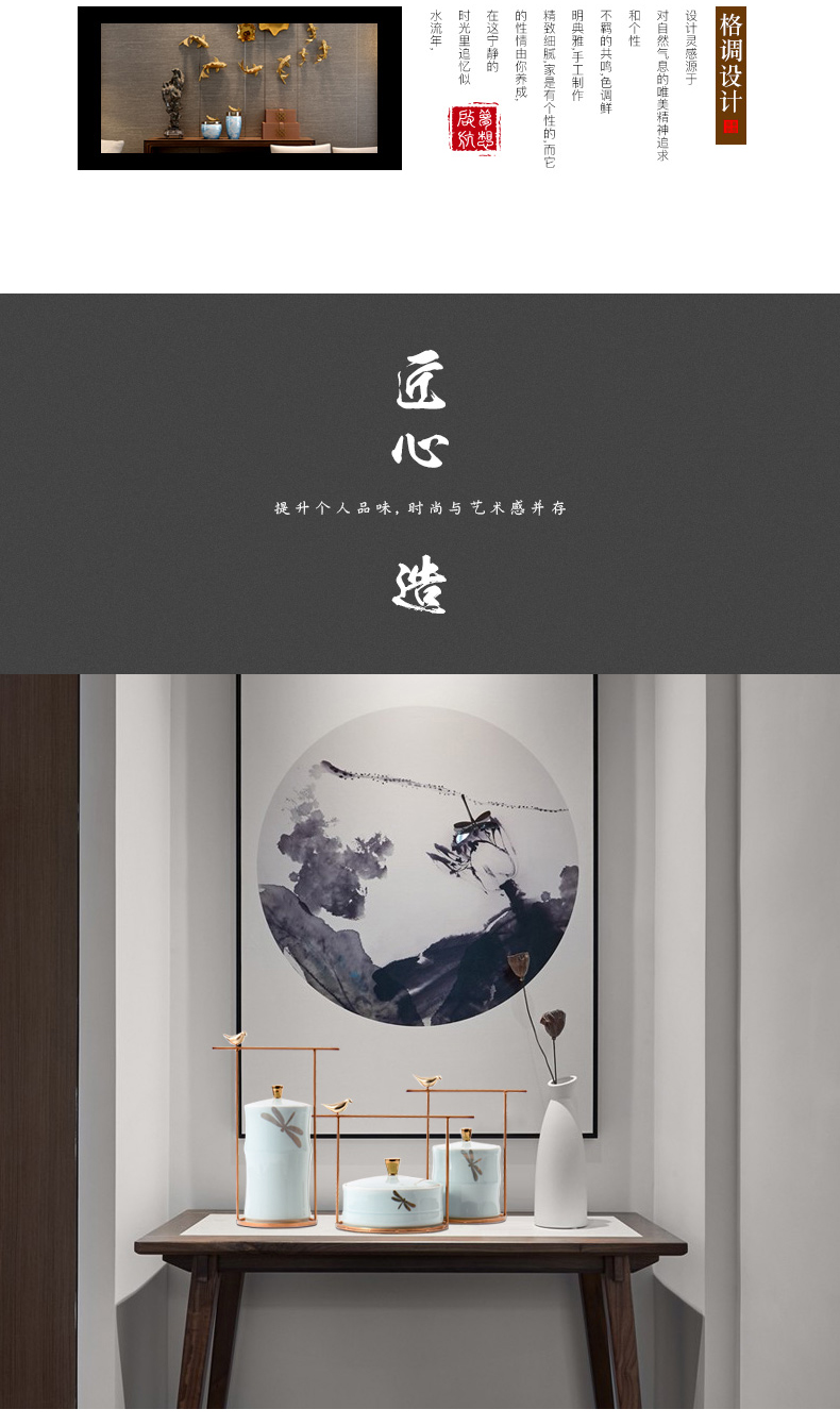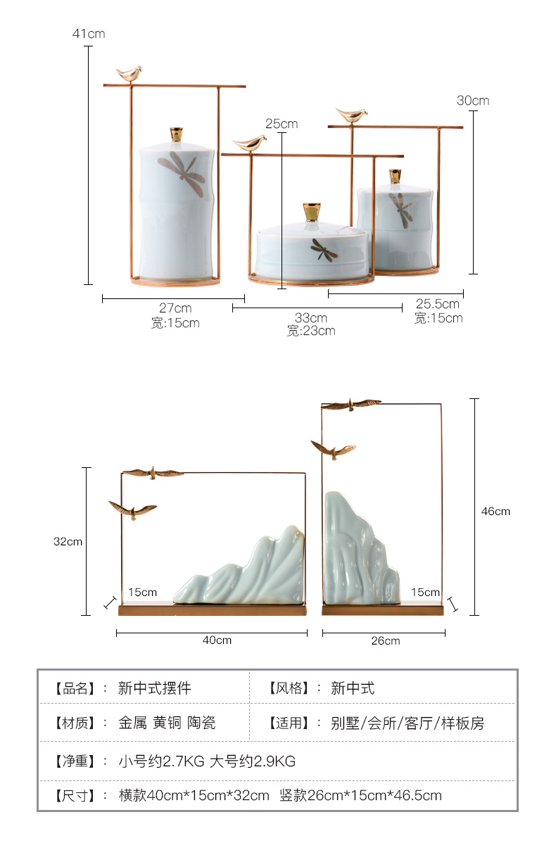 新中式禅意家居饰品摆件现代客厅电视柜玄关陶瓷铜样板房酒店软装