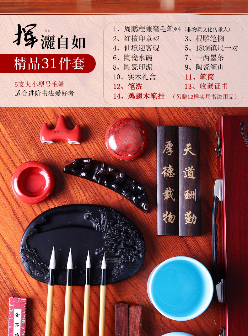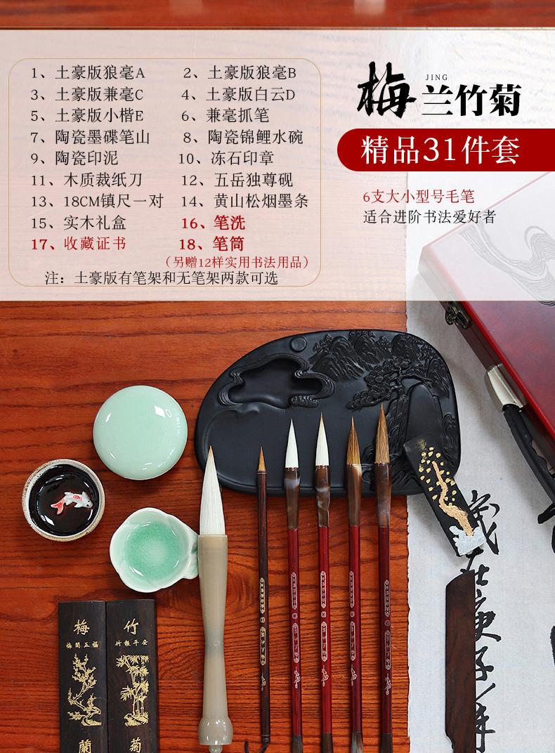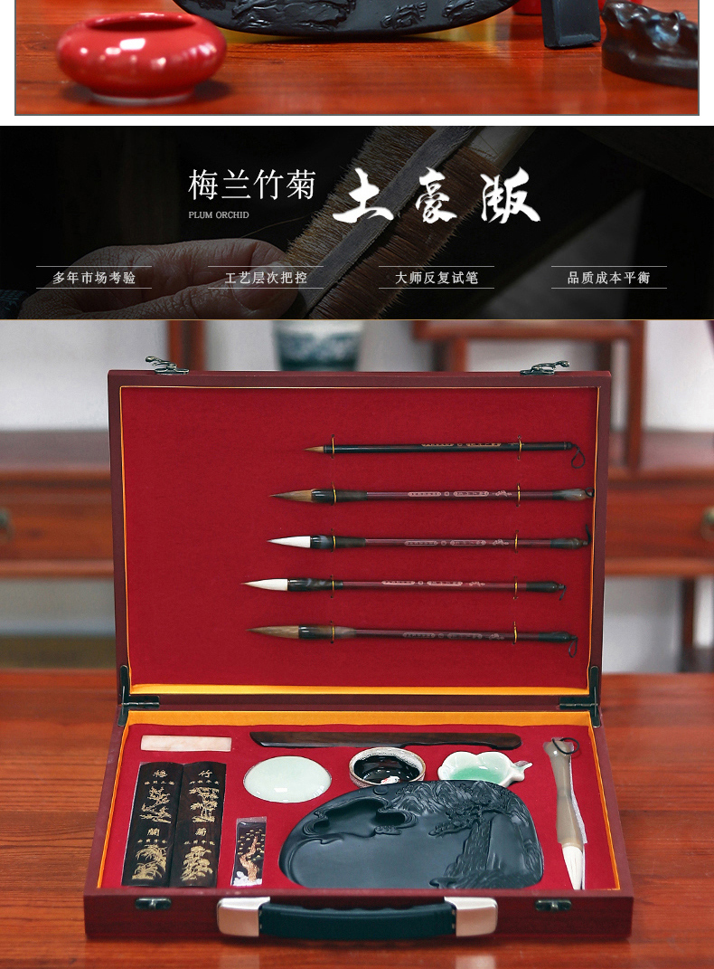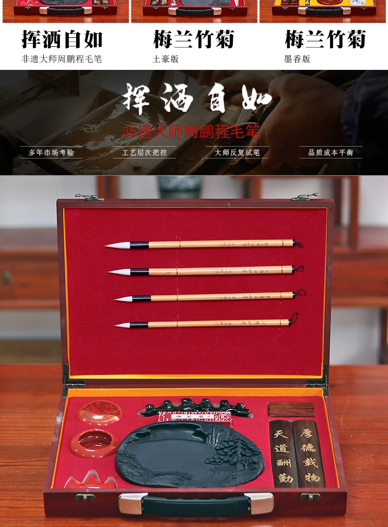 毛笔套装高档专业文房四宝笔墨纸砚成人精品礼盒初学狼毫兼毫毛笔