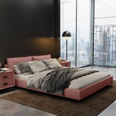 意式极简轻奢床真皮床1.8米双人床现代简约主卧室网红床ins风皮床