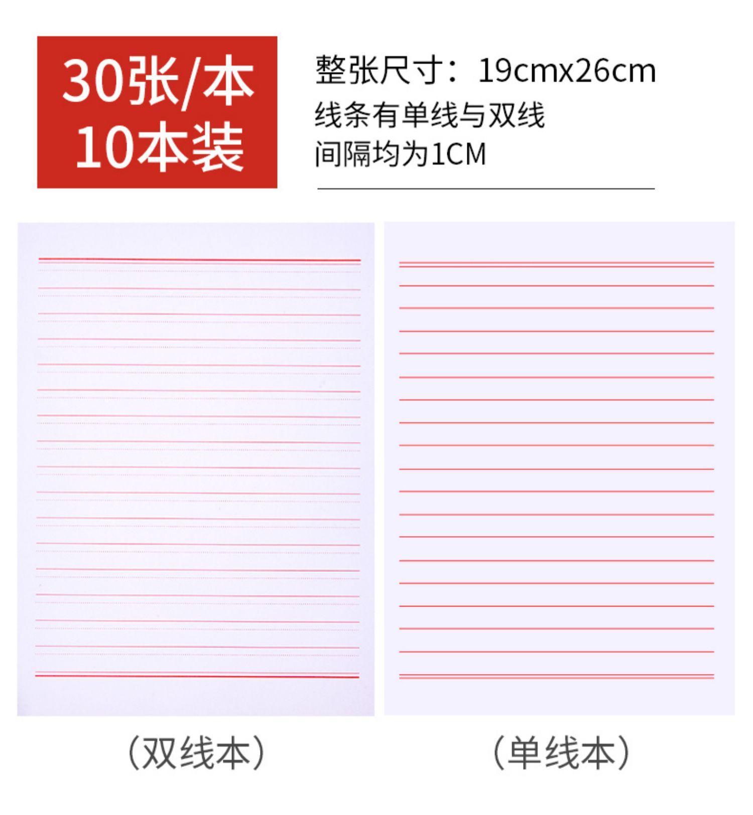产品参数: 品牌: 六品堂型号: zc208-1颜色分类: 单线本 加厚5本装 单线本 加厚10本装(店长推荐10本更优惠) 双线本 加厚5本装 双线本 加厚10本装 单线本 加厚3本装+专用笔 双线本 加厚3本装+专用笔生产企业: 六品堂货号: zc208-1