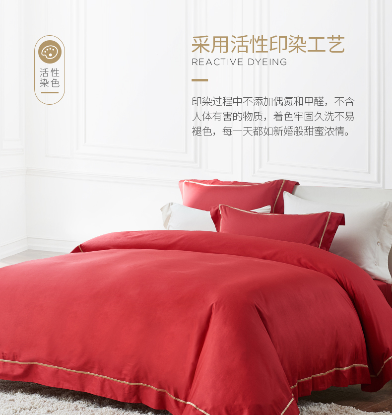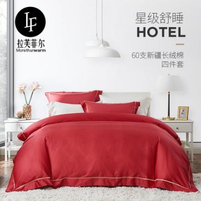 LF拉芙菲尔 婚庆四件套大红全棉刺绣床上用品简约纯棉被套床单