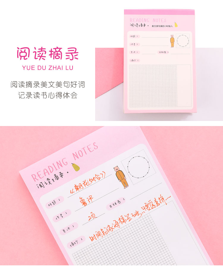 4本装咔巴熊便利贴学生用每日计划阅读摘录可粘帖便条