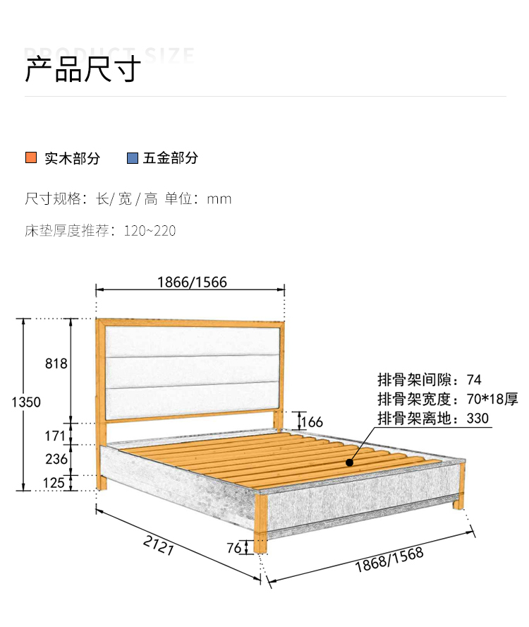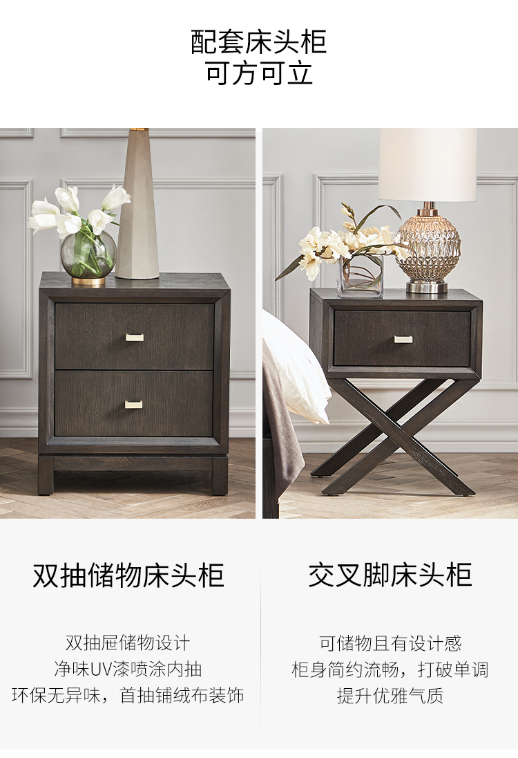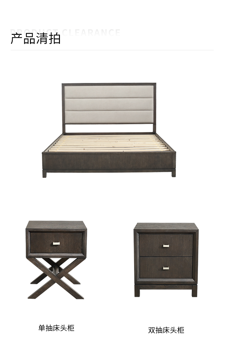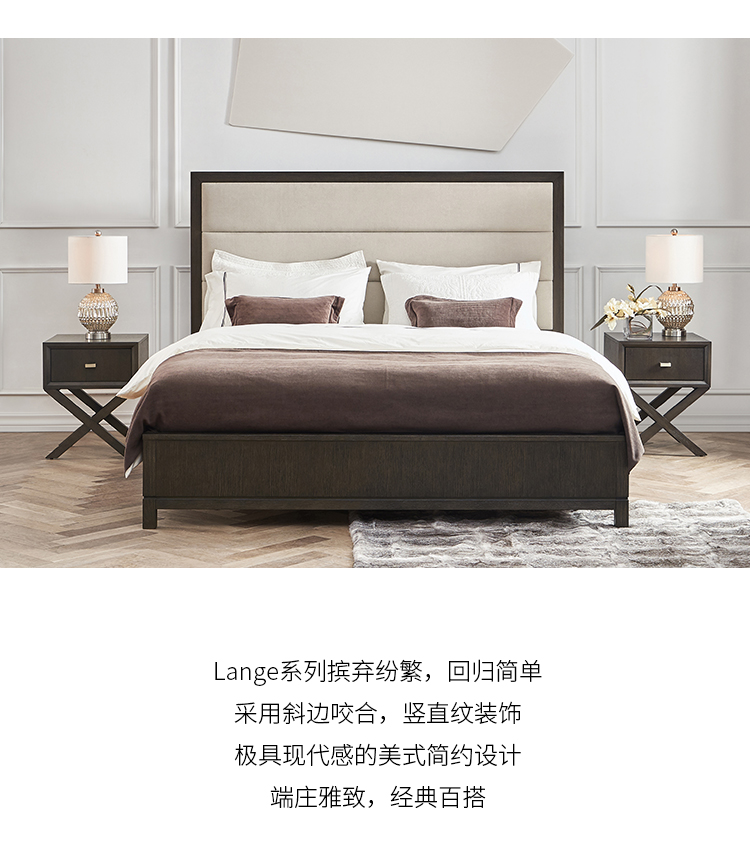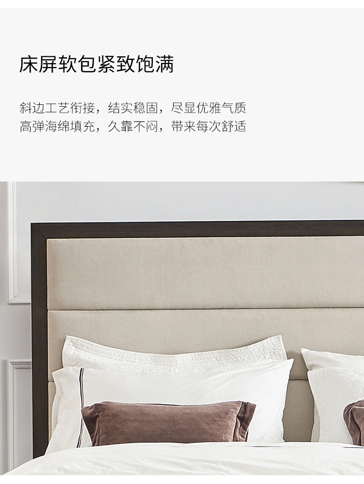 朗格/美式轻奢风格布艺软包大床卧室实木脚双人婚床287S